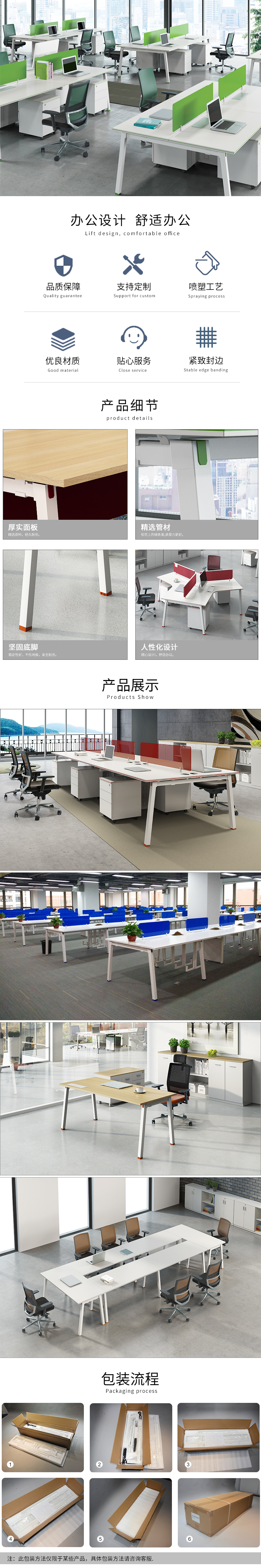 3.钢脚:采用优质宝钢特制钢材而成,台面可以承重180KG压力,德国烤漆六道环氧树脂工艺处理。