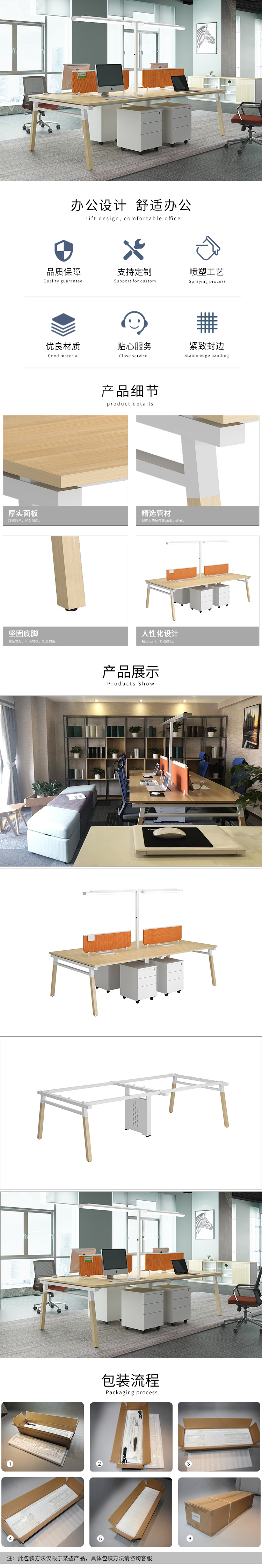 3.钢脚:采用优质宝钢特制钢材而成,台面可以承重180KG压力,德国烤漆六道环氧树脂工艺处理。
